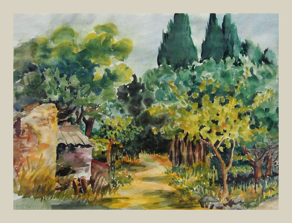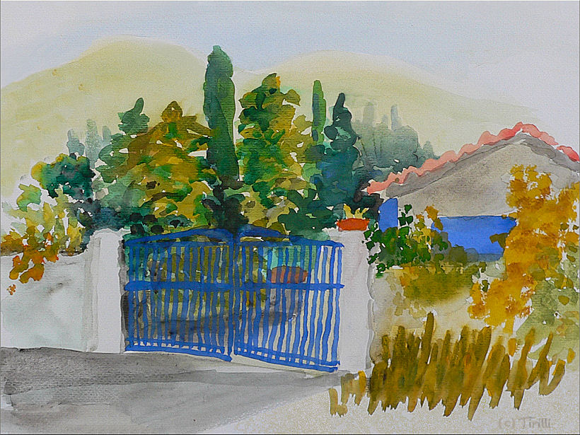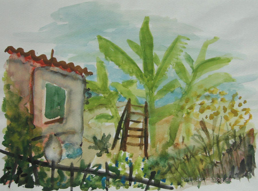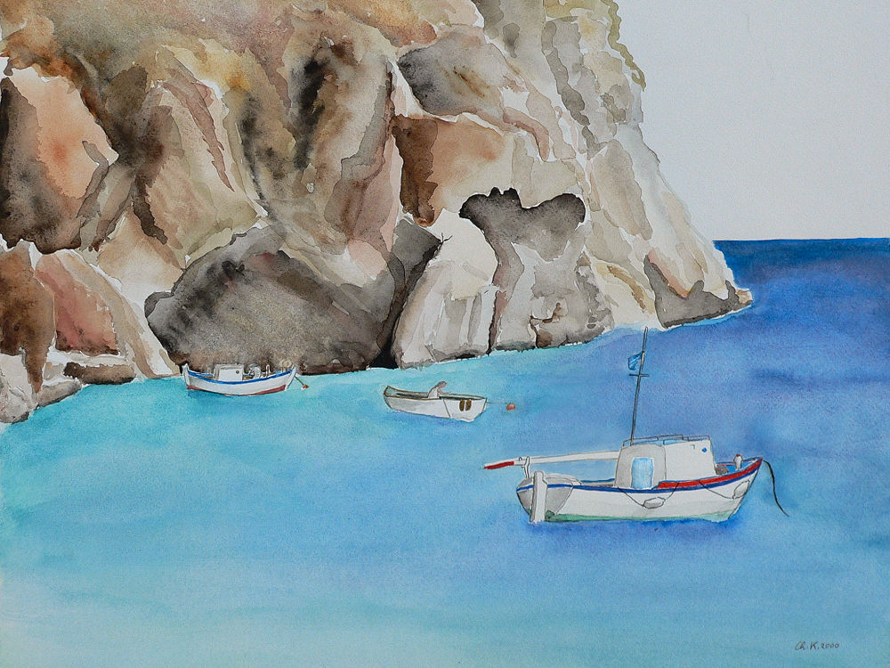 Was hier zu sehen ist, kann nicht mehr als ein Hobby sein, denn mir fehlt vieles, besonders natürlich ausgefeilte Technik. In der Schule wurden meine bildnerischen Leistungen überhaupt nicht gewürdigt, auch nicht von mir. Doch dann, in Griechenland, ich besuchte die "Griechische Sommerakademie" auf Zakynthos, erlebte ich zum ersten Mal wie schön es ist, in der Landschaft zu sitzen und malend mit der Seele zu baumeln. Es gibt im Urlaub kaum etwas Schöneres für mich! So lernte ich, alle Eindrücke meiner Umgebung zum ersten Mal so richtig "zu inhalieren" und im Inneren, wie auf dem Papier, als Beute mit nach Hause zu tragen. Wie blind war ich doch vorher gewesen! Die so intensivierten Eindrücke trage ich als "Umschaltbild", das jederzeit aus dem Inneren gerufen werden kann, in die ungeliebten kalten Jahreszeiten. Ich kann nur jedem raten, es auch einmal zu versuchen! Schmeißt das verflixte Leistungsdenken weg und freut euch am kreativen Tun wie in euren Kindertagen! Es bereichert und was gibt es wertvolleres!