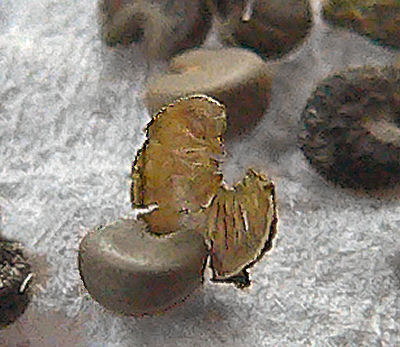 Es ist ein Engelbertsches Samenkorn. Eines von einer Buntnessel also. Was wie eine getrocknete Orangenscheibe aussieht ist die Schale. Eigentlich wollte ich erst auflösen, wenn unser aller Guru